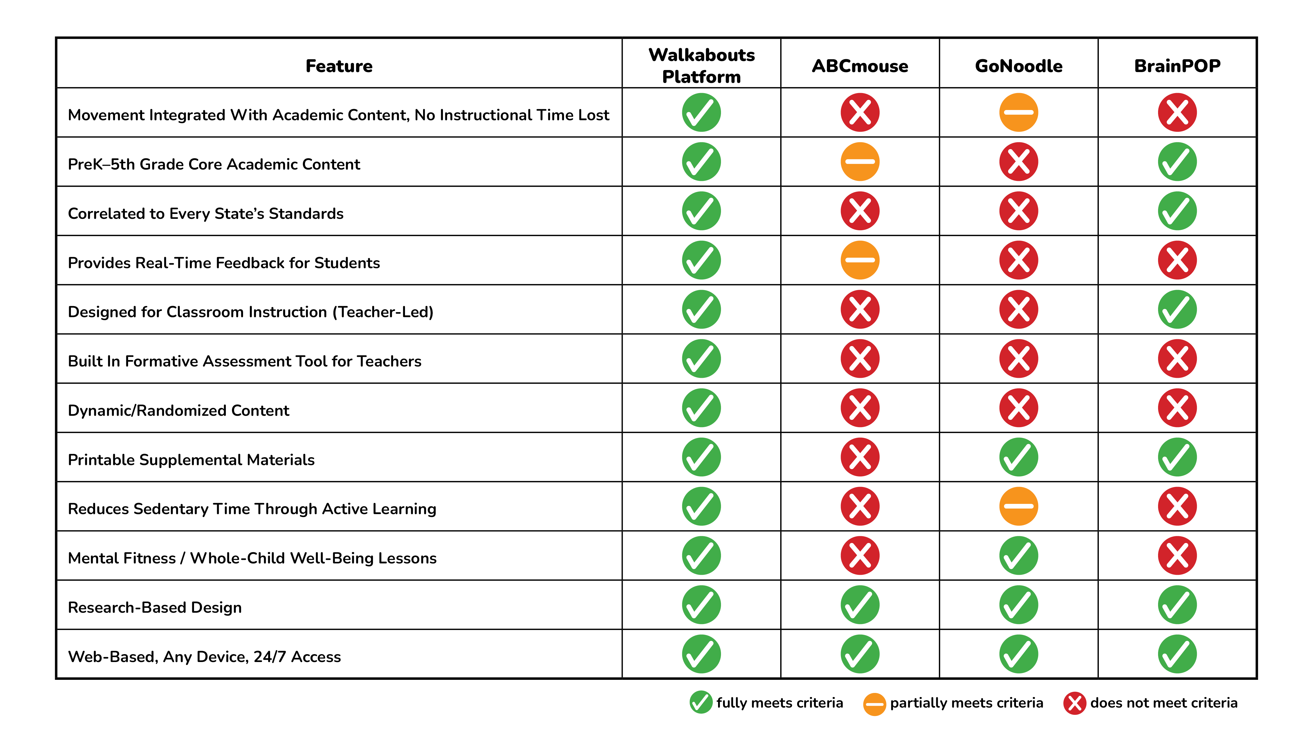 The Walkabouts Platform stands apart in a crowded field of children’s learning tools by doing what no other competitor fully achieves: seamlessly integrating academic instruction, physical movement, and whole-child well-being into every lesson.