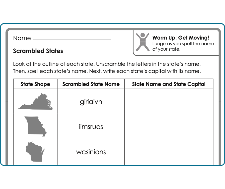 Walksheets, worksheets with a movement component, are correlated to Pre-K through 5th grade standards and cover language arts, reading, math, science, social studies, character education, test prep, financial literacy, and resiliency.